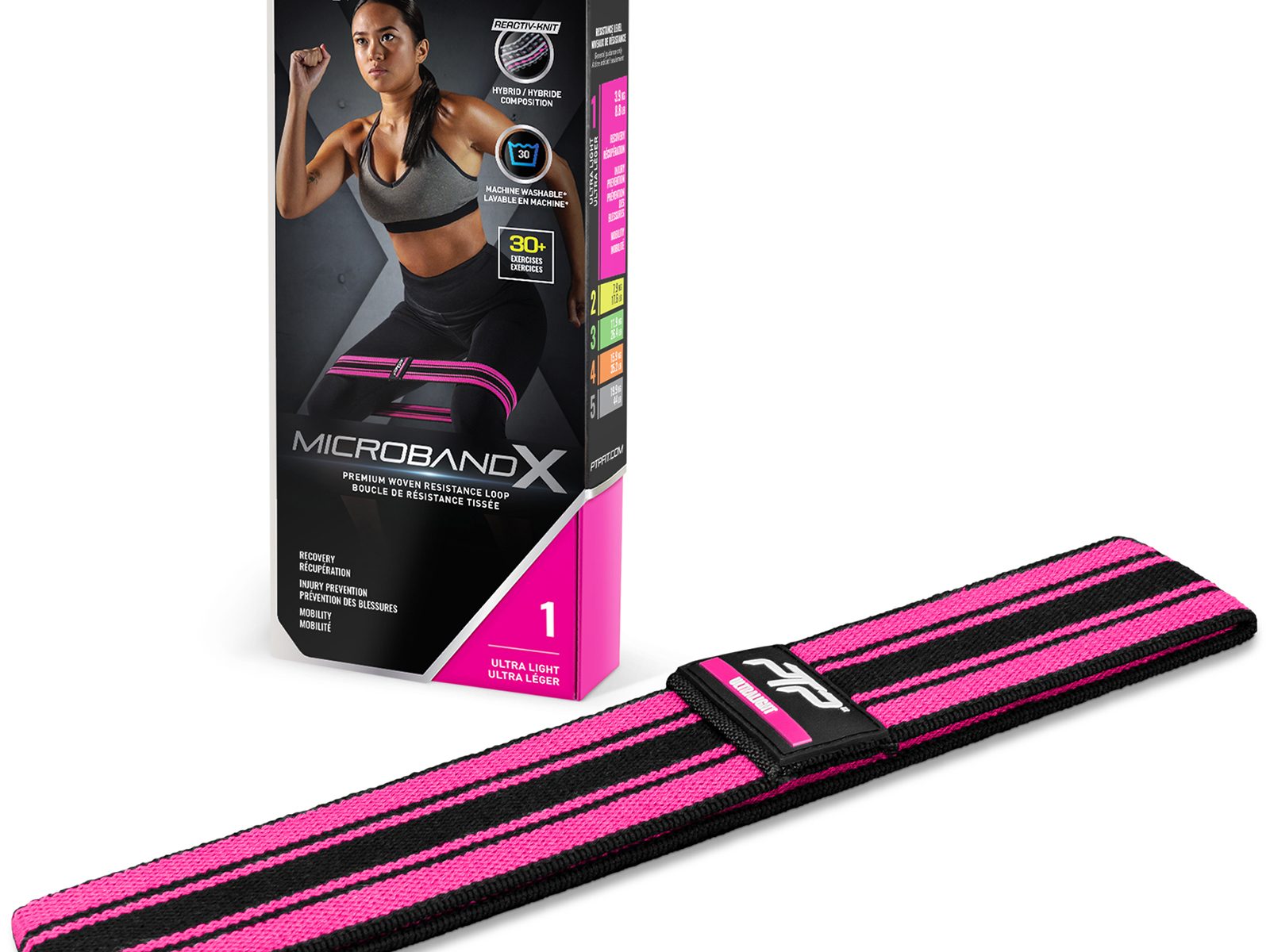 Featuring innovative “Reactiv-Knit”, the MicroBand X is designed to strengthen your hips, glutes, legs and shoulders without curling up or sticking together. It can be machine washed to prevent perspiration build-up and bacteria growth.