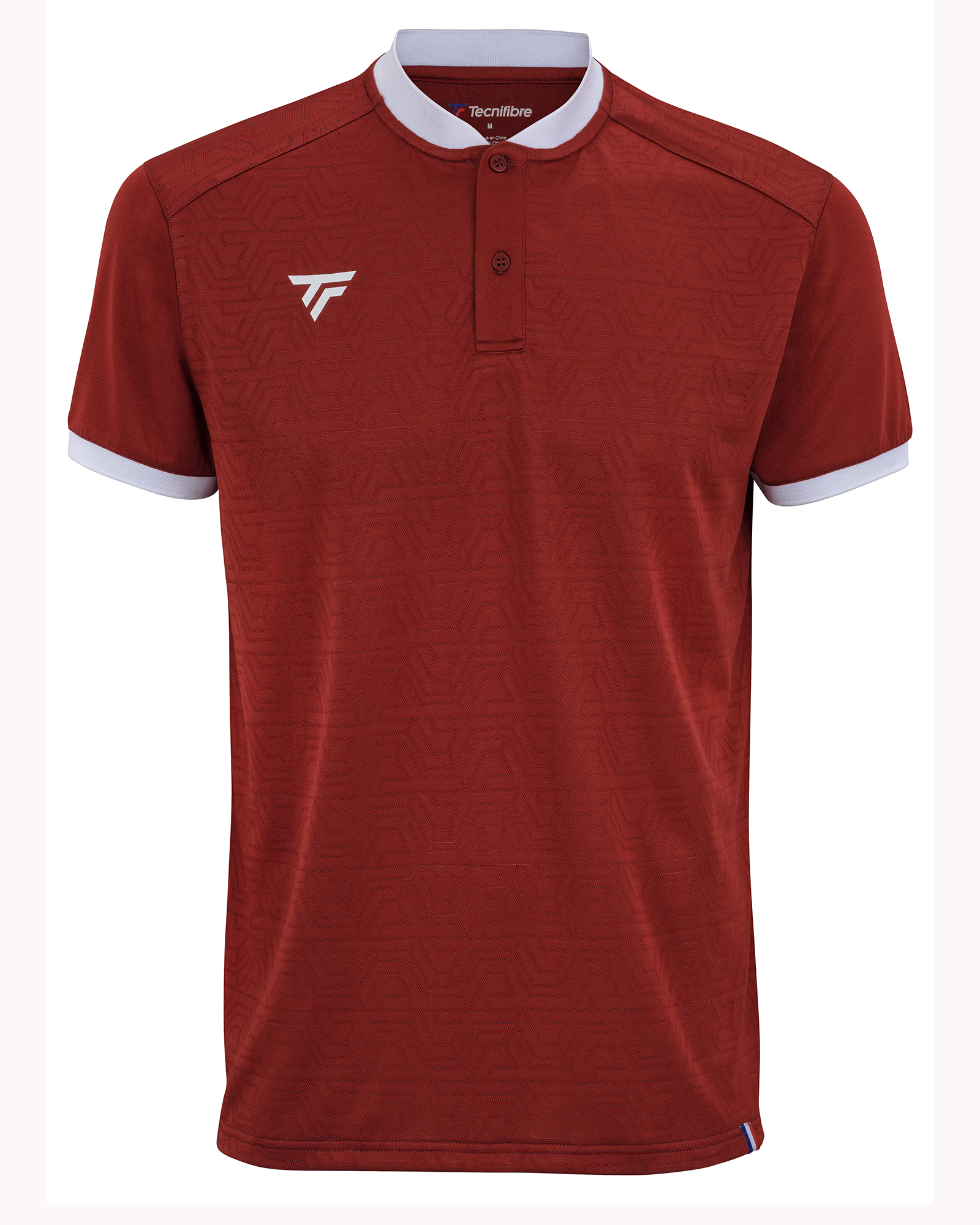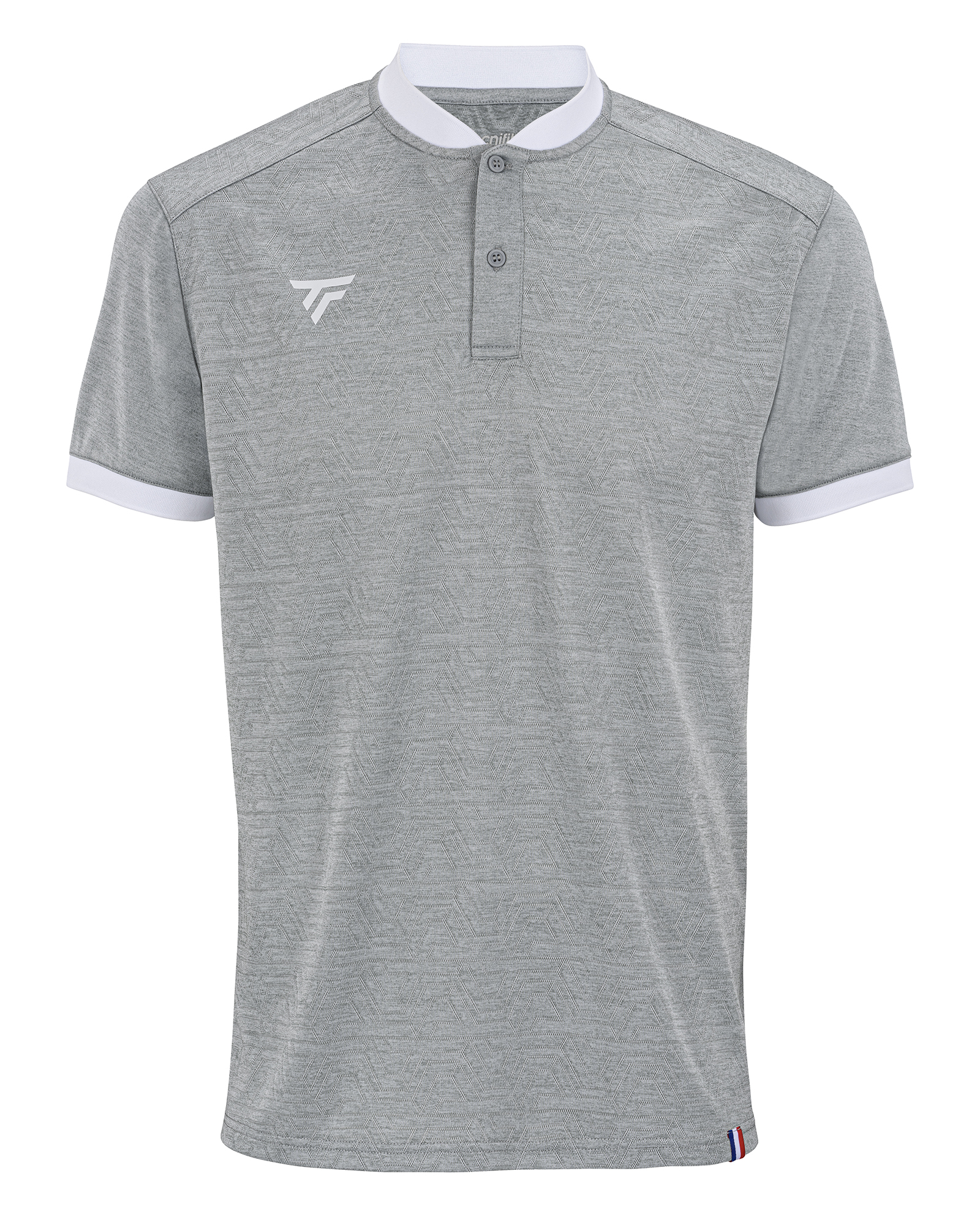 Our polo shirt embodies both tennis heritage and modernity with a stand collar and white sleeve ribs for a modern look. We have chosen the most technical material: a 100% stretch polyester mesh, completely microperforated to provide lightness and optimal breathability. For a sober and elegant design, the coats of arms of the graphic frame are integrated into the mesh of the tone-on-tone knit.
