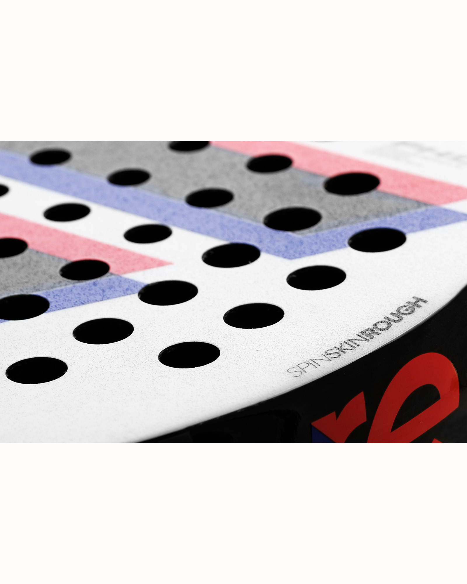 Made from special TEI carbon fibers that maximize shock absorption on impact for more feel. The head is covered with a “Spin Skin rough” relief for maximum spin absorption.