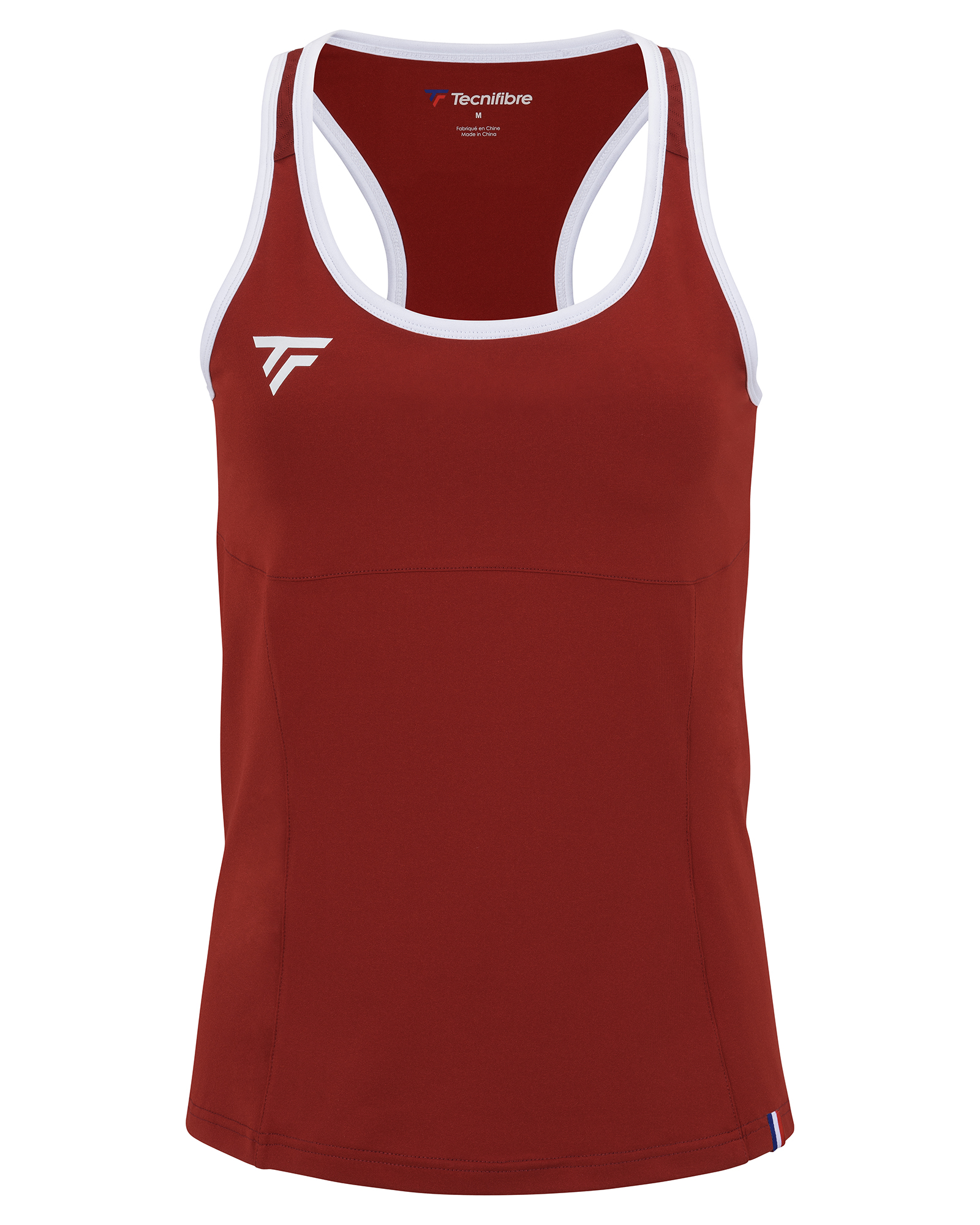 We have selected 2 complementary materials: the front side is a mix of polyester and elastane which provides support and elasticity to adapt to your body. the back side is made of stretch polyester and completely microperforated to provide lightness and optimal breathability. A bra is integrated to guarantee optimal support during exercise. For a sober and elegant design, the coats of arms of the graphic frame are integrated into the mesh of the tone-on-tone knit, on the back side.