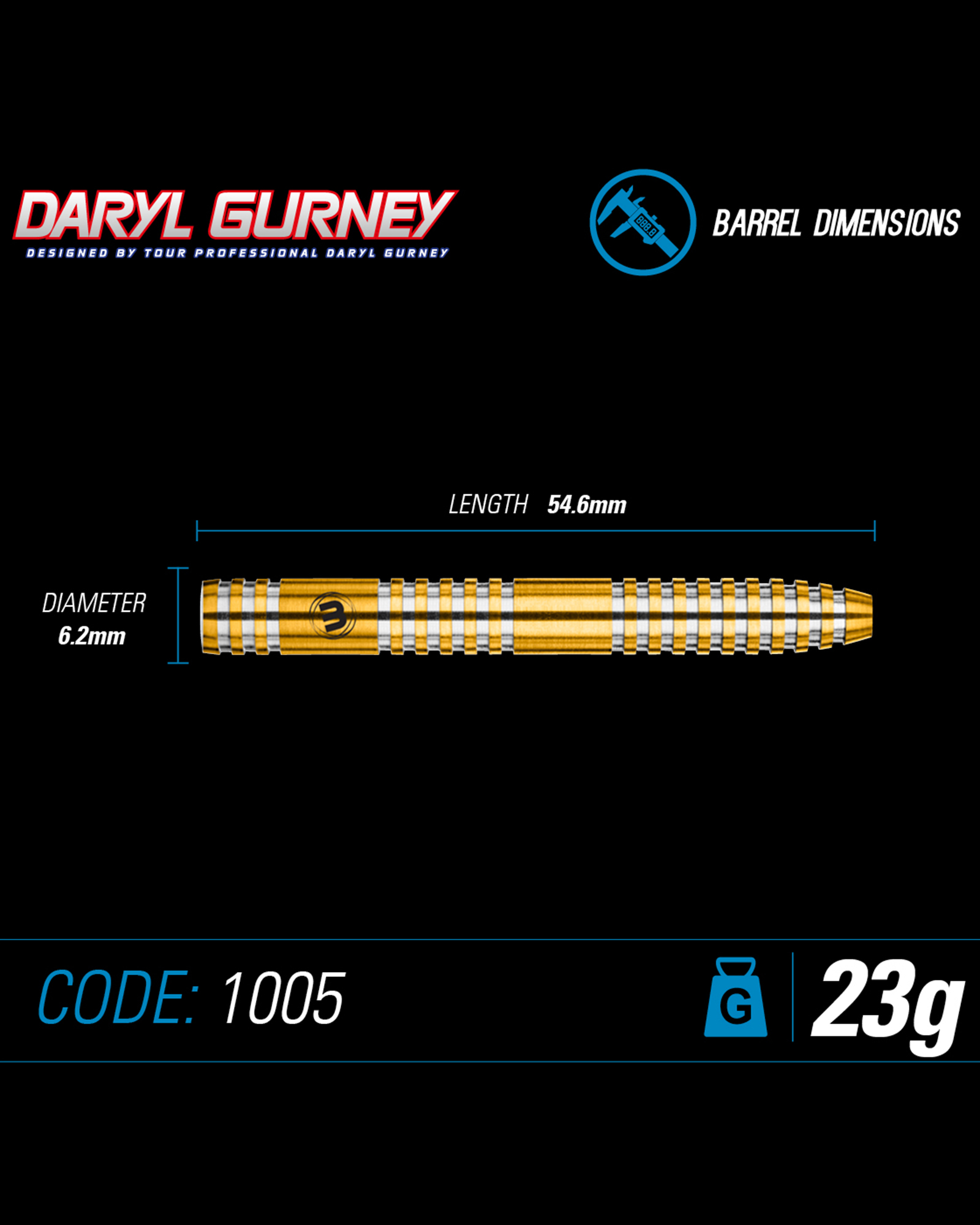 Daryl Gurney has rapidly become a PDC superstar, and these 90% exact replicas helped fuel his success on the oche. Complete with stunning Titanium Nitrude coating for long-lasting performance and grip, the sleek profile is exactly as Daryl wanted for close grouping and pinpoint accuracy.